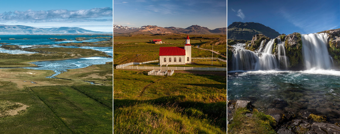 Sie entdecken auf Ihrer Reise die Halbinsel Snæfellsnes mit ihren unzähligen Sehenswürdigkeiten. Besuchen Sie den Kirkjufellsfoss bei Grundarfjörður, die malerischen Orte Arnarstapi, Hellnar und Búðir im Süden und bewundern Sie den mystischen Vulkan Snæfellsjökull, der Jules Verne zu seinem Roman „Reise zum Mittelpunkt der Erde“ inspiriert haben soll.